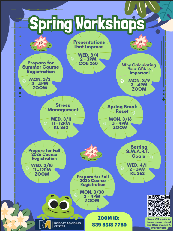 In Collaboration with the Bobcat Advising Center and the English Language Institute.